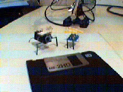 PLIF are walking three legs microrobots; two legs are moved by means of piezo ceramics bimorph actuators, while the third is only passive. These robots are very small (2cm X 2cm) and very light (few grams) but at the same time relatively fast (20 cm/s) with the capability to move with very small steps (few microns). Applications of such a kind of microrobots can be found in micromachining, inspection of small environments, micro-surgery, study of cooperating systems etc.. Three different version of these robots have been built and an automatic learning soft computing algorithm has been implemented to allow the microrobots to act as a prey or a predator. The main peculiarity of the PLIF robots is that the single steps are very short in lenght (few microns) but the legs move at high frequency (800Hz) so that a considerable speed can be reached. The main drawback is that the amplitude and direction of movement is very uncertain strongly depending on the type and roughness of the surface. To solve such a problem the microrobot trajectory must be controlled in a closed loop way. In particular to measure the position of the system an infrared sensor has been adopted.