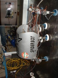 The Spiderbot is a climbing robot that use two frames pneumatically actuated; it use eight suction cups to adhere to the wall. It is built entirely by using aluminium. Total system weight is about 20 Kg and total payload is about 25 Kg maximum.